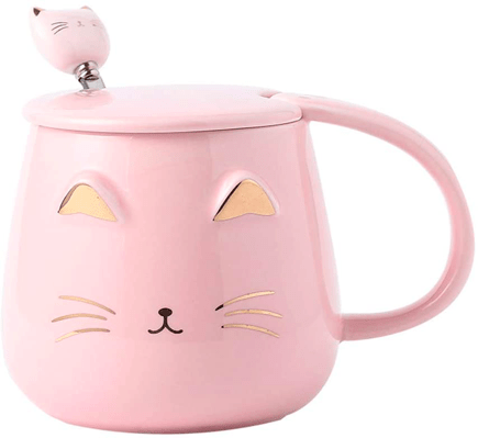 What better way to start your day than a cup of hot chocolate with a super-cute mug? This mug comes in three colours: white, black and pink. And of course, a matching spoon and lid to keep it warm. Remember that this mug is dishwasher safe, however, not Microwave safe. No hand-washing is necessary. It is economic and healthy, suitable for both hot and cold drinks! It is carefully packaged and safe enough to prevent it from being damaged along the way to its new home 😉